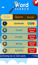 Play word search in your choice of topic with exciting game play never seen before in other similar games.Each Pack is based on a topic, it has several hundreds of popular words which form unlimited levels to play.
